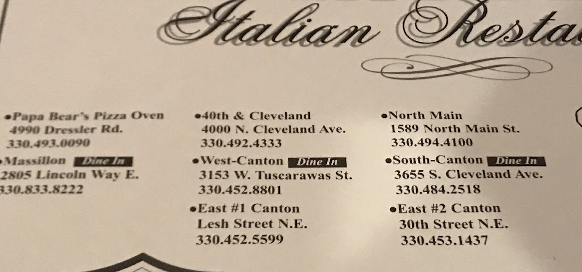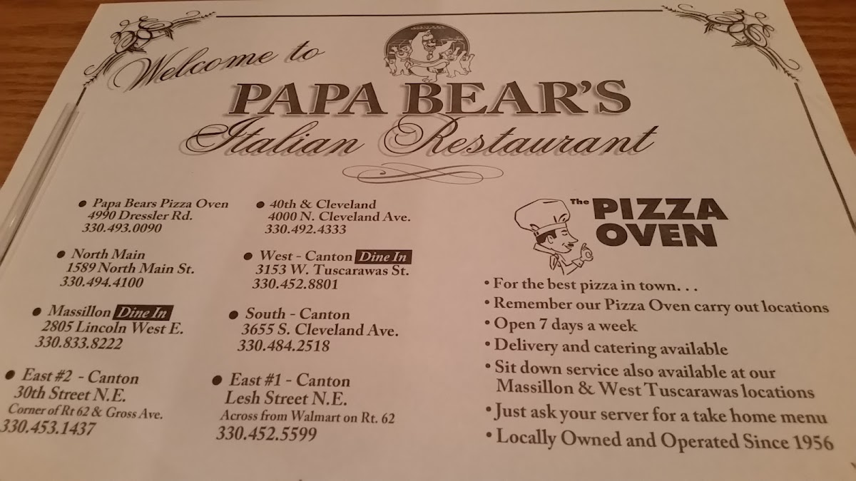 Welcome to Papa Bear's Italian Restaurant The Pizza Oven, a beloved establishment located at 305 Applegrove St NW, North Canton, OH. This charming restaurant specializes in authentic Italian cuisine, featuring a diverse menu that offers something for everyone.